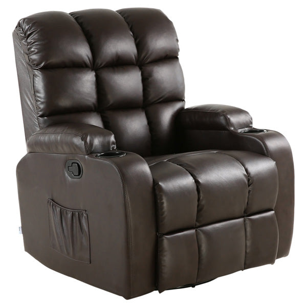 You'll be the envy of your social circle when they set eyes on this fabulous Regal Recliner Chair. As part of our Premier Collection, this chair not only reclines, rocks and swivels, but it also offers a heated seat function, an 8-point massage, drinks holder on both the left and right-hand side and extra storage space to store your TV remotes, games controllers and magazines. Simply pull the lever on the side to put your feet up, and sink into the pillow quilted backrest for ultimate relaxation.