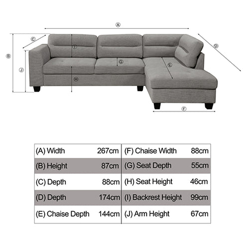 Relax in style and comfort with the sleek and stylish Riga Corner Sofa, designed to offer both comfort and modern elegance. Upholstered in soft, durable grey fabric and filled with high-quality foam, this sofa provides exceptional comfort and support, perfect for lounging or entertaining.