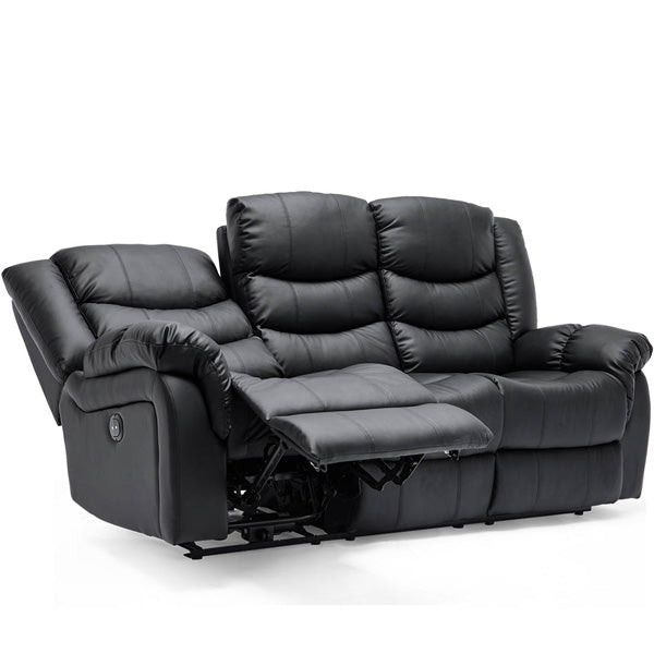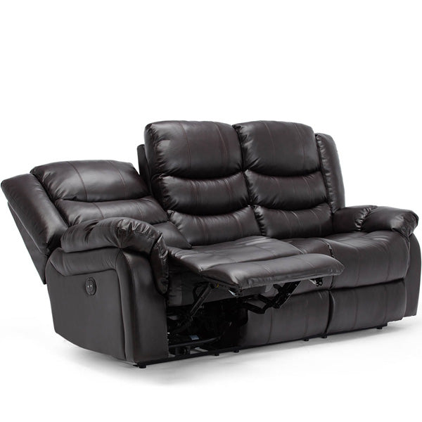 With curvaceous padded cushions and plush design, the Seattle Electric Sofa oozes comfort and style. Part of our Premier sofa collection, this cosy sofa is upholstered in easy to clean, bond grade leather cover, making it a practical choice for families. The seats recline individually, enabling you to put your feet up and take a quick nap, even when another family member wants to stay sitting upright. Press the buttons on the side of the sofa to control the recline function. With its soft padding and superb lumbar support, this stylish sofa can be purchased individually as two and three-seaters, or as a set including the Seattle Electric Recliner Chair. Available in black or brown.