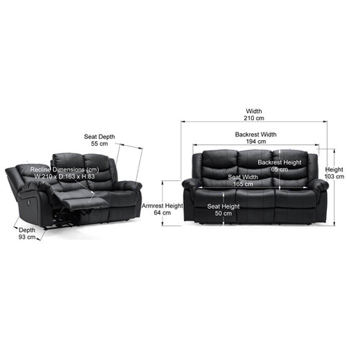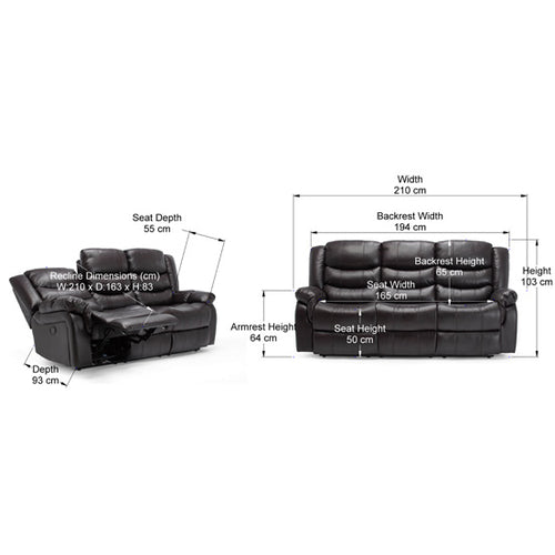 Sydney Manual Recliner 3 Seater Sofa
