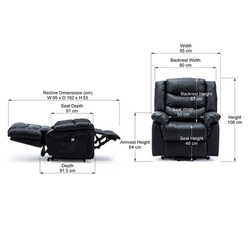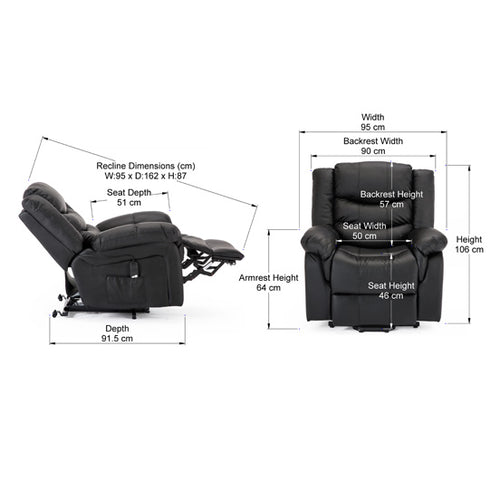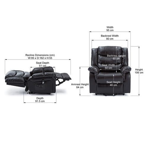 Seattle Leather Single Motor Rise Recliner Chair in Black