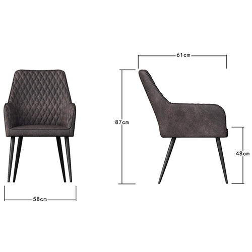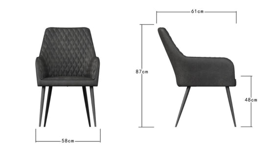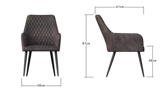 Introducing the Ella Dining Chair Set: Elevate your dining experience with the Ella, a symbol of modern elegance and sophistication. The Ella Technology Fabric Dining Chair Set is the perfect choice to infuse style and comfort into your dining area. Upholstered in premium Technology Fabric, this chair is not only soft to the touch but also has the appearance and feel of leather; whilst being highly durable and easy to maintain. Featuring robust metal legs with a sleek matte black finish, the Ella Dining Chair exudes contemporary charm. The Ella Dining Chair is thoughtfully offered as a set of 4, providing you with a complete dining seating solution. Whether you have a small family or frequently entertain guests, Ella makes it easy to enhance your dining area with a cohesive and stylish seating arrangement. Available in gorgeous colours Brown and Grey, transform your dining space and order your set today.