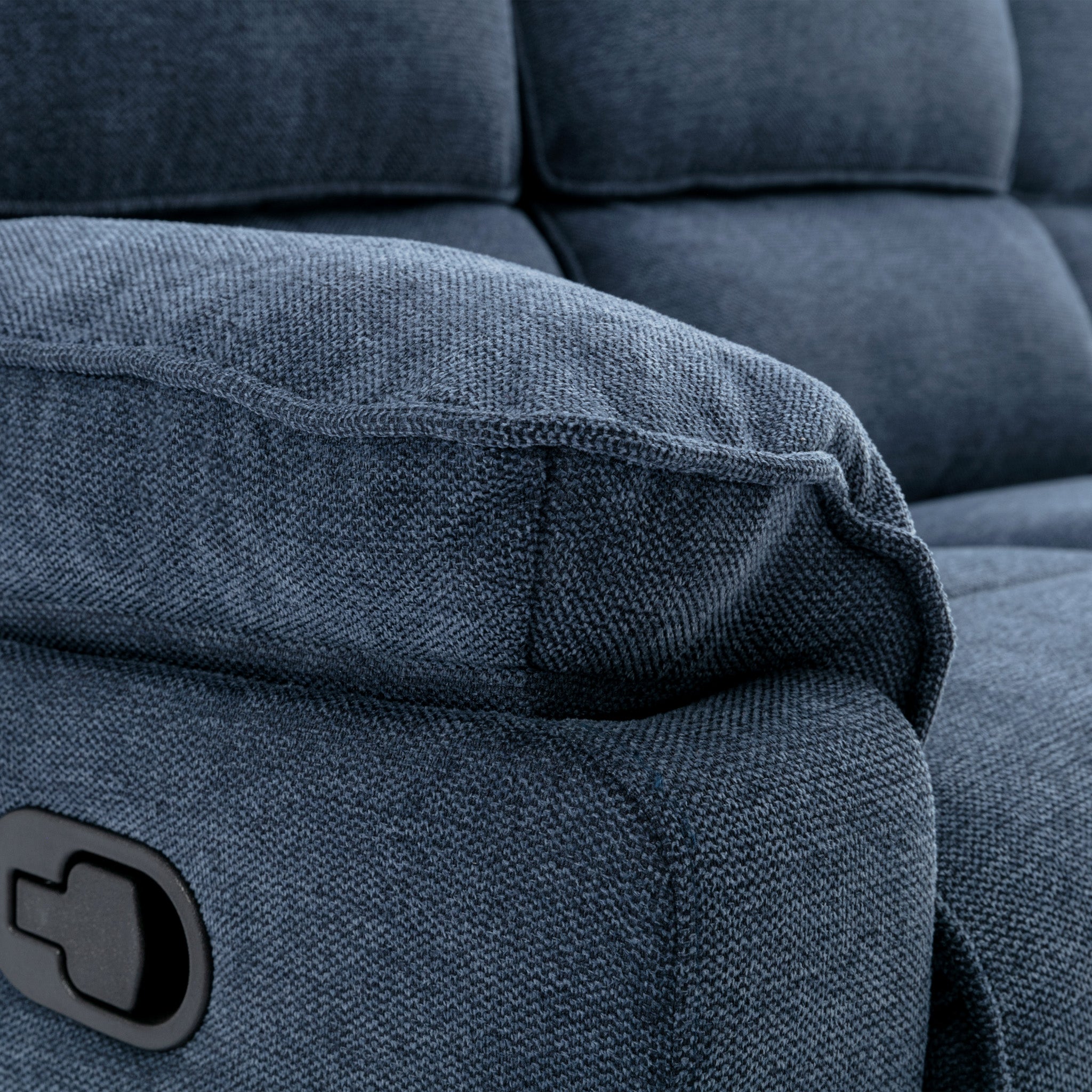 Available in Blue and Grey, the Sydney Latch Recliner Sofa is the perfect addition to your living room.