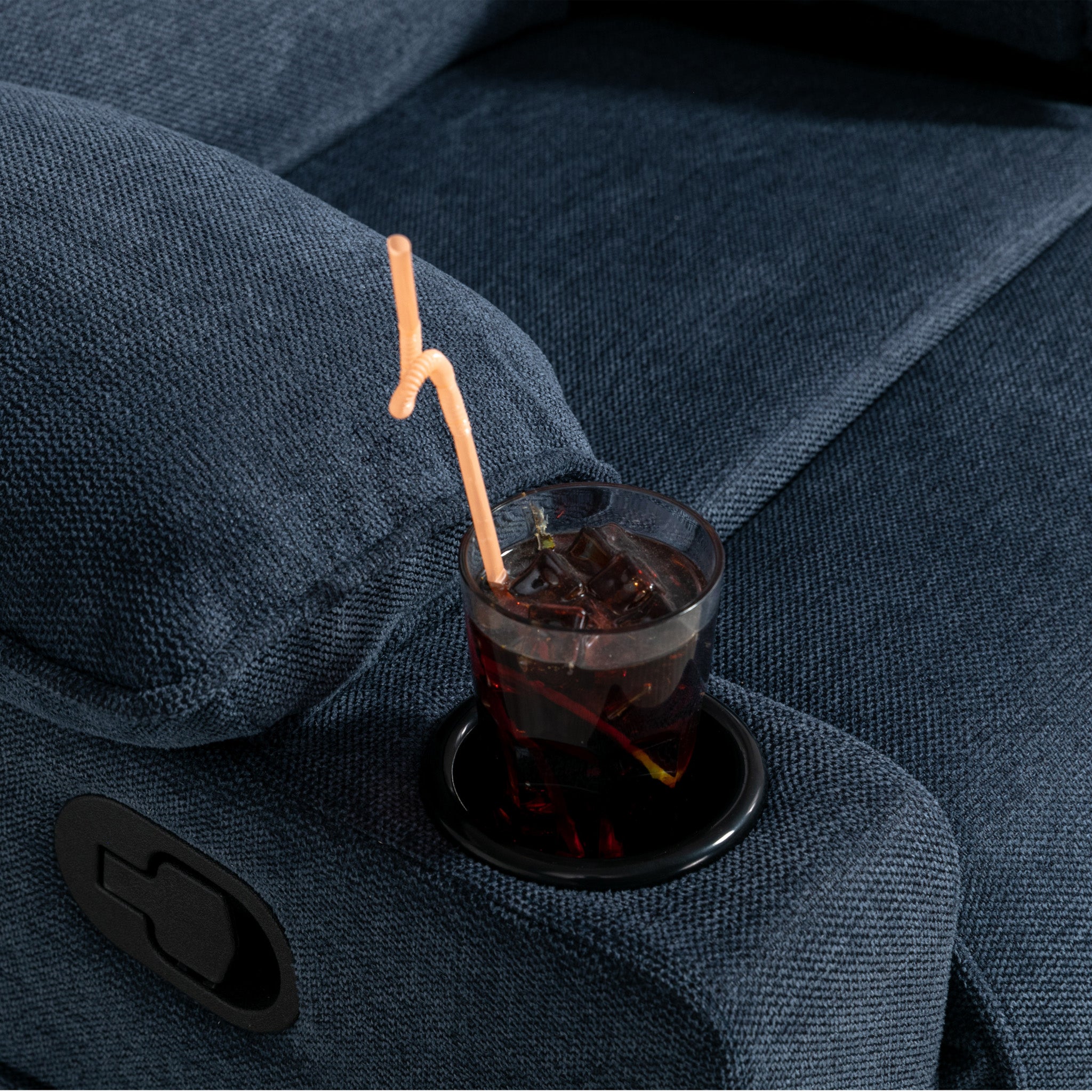 Available in Blue and Grey, the Sydney Latch Recliner Sofa is the perfect addition to your living room.