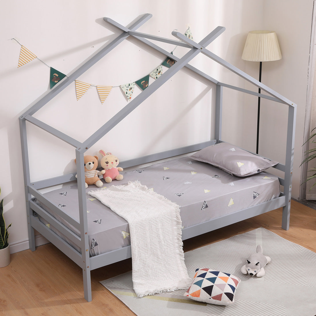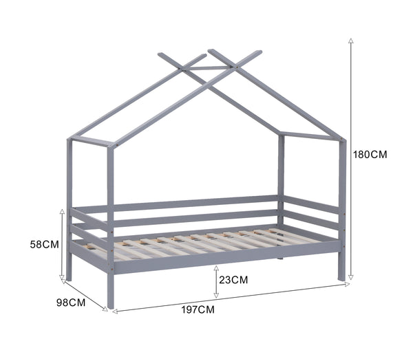 Teddy Kids Wooden House Treehouse Single Bed Frame in Grey