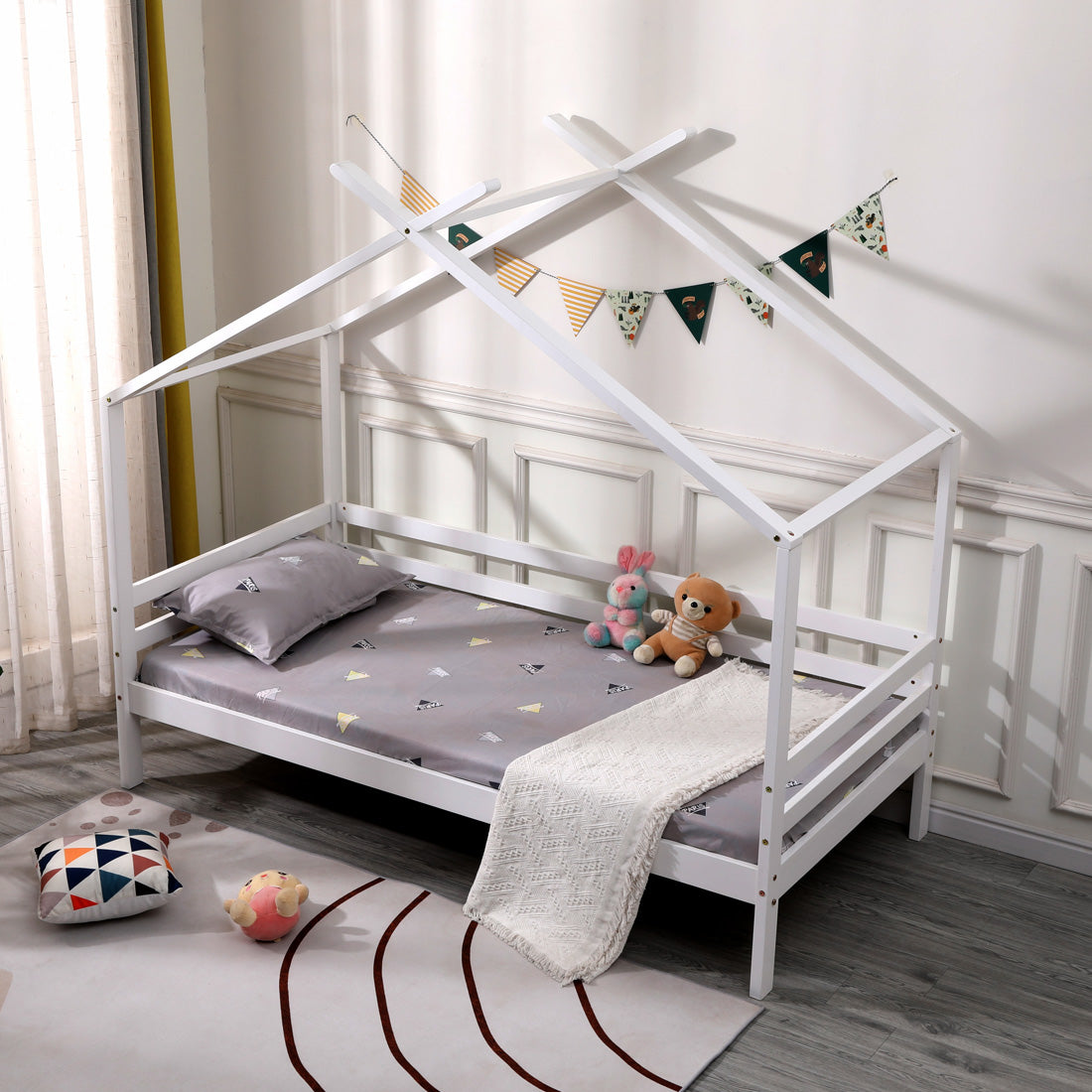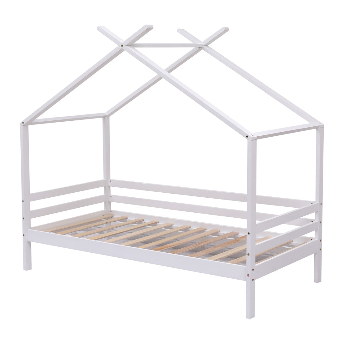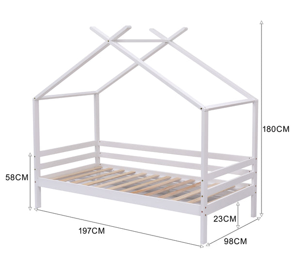 Teddy Kids Wooden House Treehouse Single Bed Frame in White