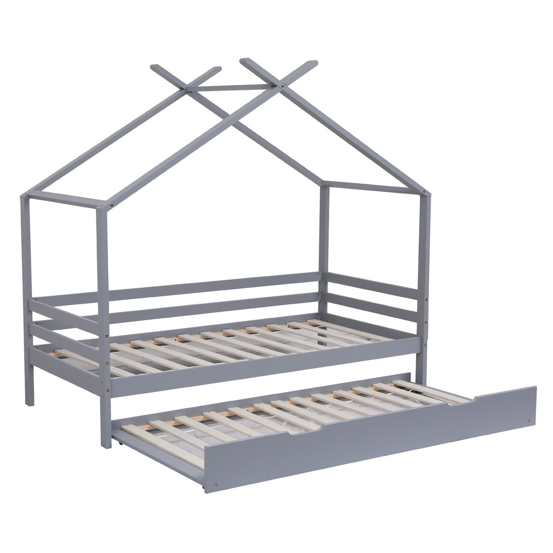 Teddy Kids Wooden House Treehouse Single Bed Frame with Guest Trundle in Grey