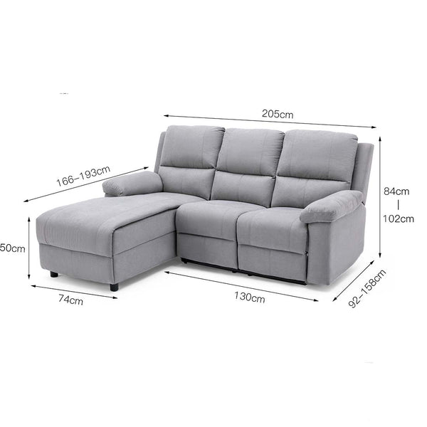 Relax in style and comfort with the beautiful Valencia chaise recliner sofa. This decadent L-shaped sofa has been designed for those that love to relax and features a stylish chaise longue and two additional seats so one family member can always be stretched out in total relaxation. In addition to a chaise longue section, this sofa also has a built-in latch recliner, giving you around 150 degrees of recline, ideal for those who like to occasionally lay back and relax. Made from sumptuous fabric, this chaise recliner sofa is exceptionally comfortable and features large pillow-style armrests and a supportive lumbar cushion, offering maximum support whether you’re upright or reclining. Available with a left-handed or right-handed chaise longue section.