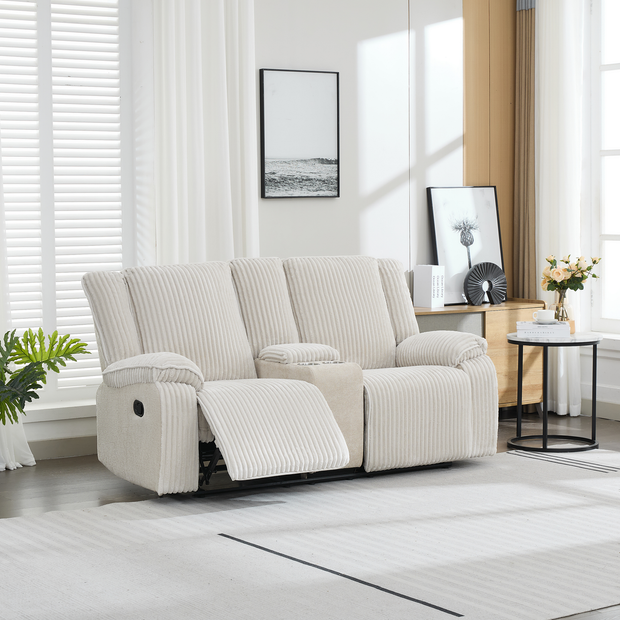 Verona 2 seater jumbo cord manual recliner sofa w drinks console