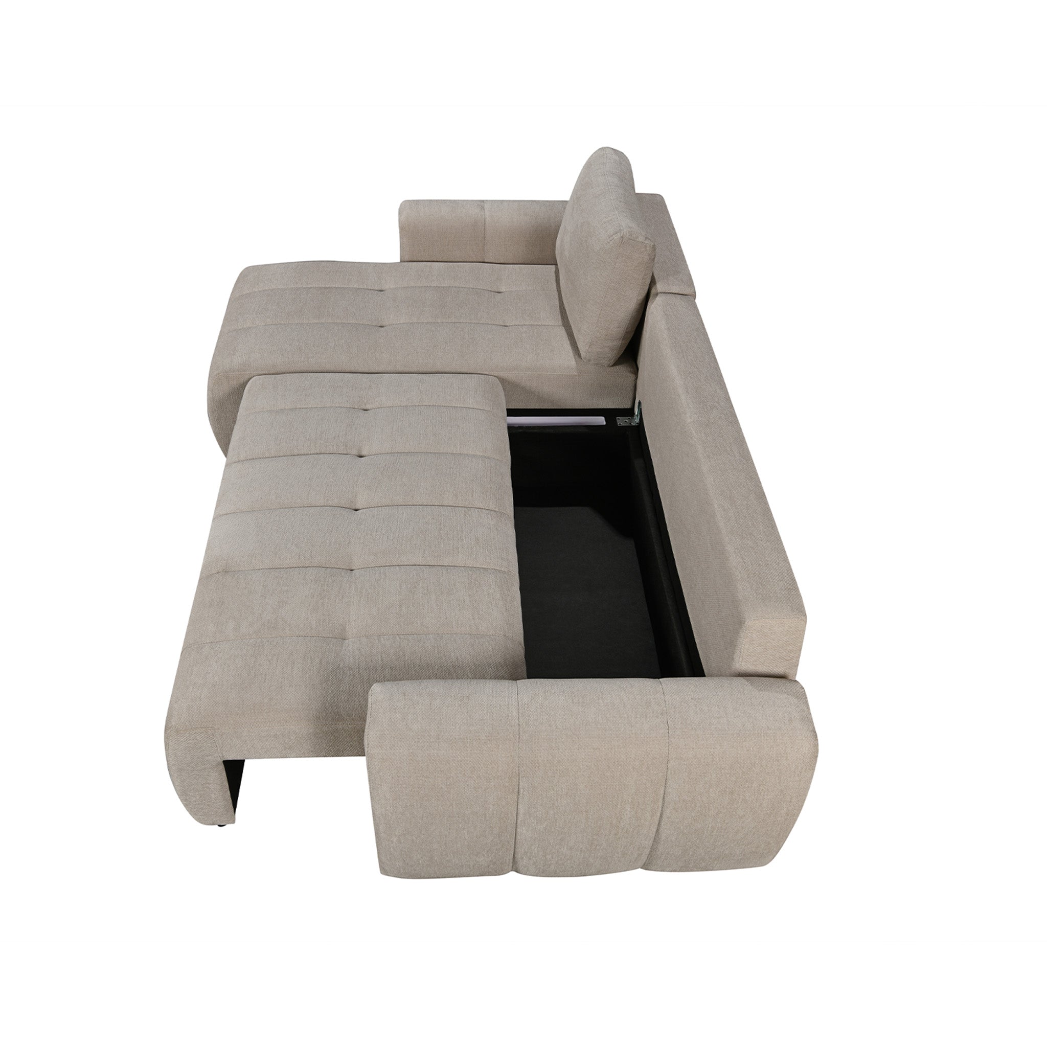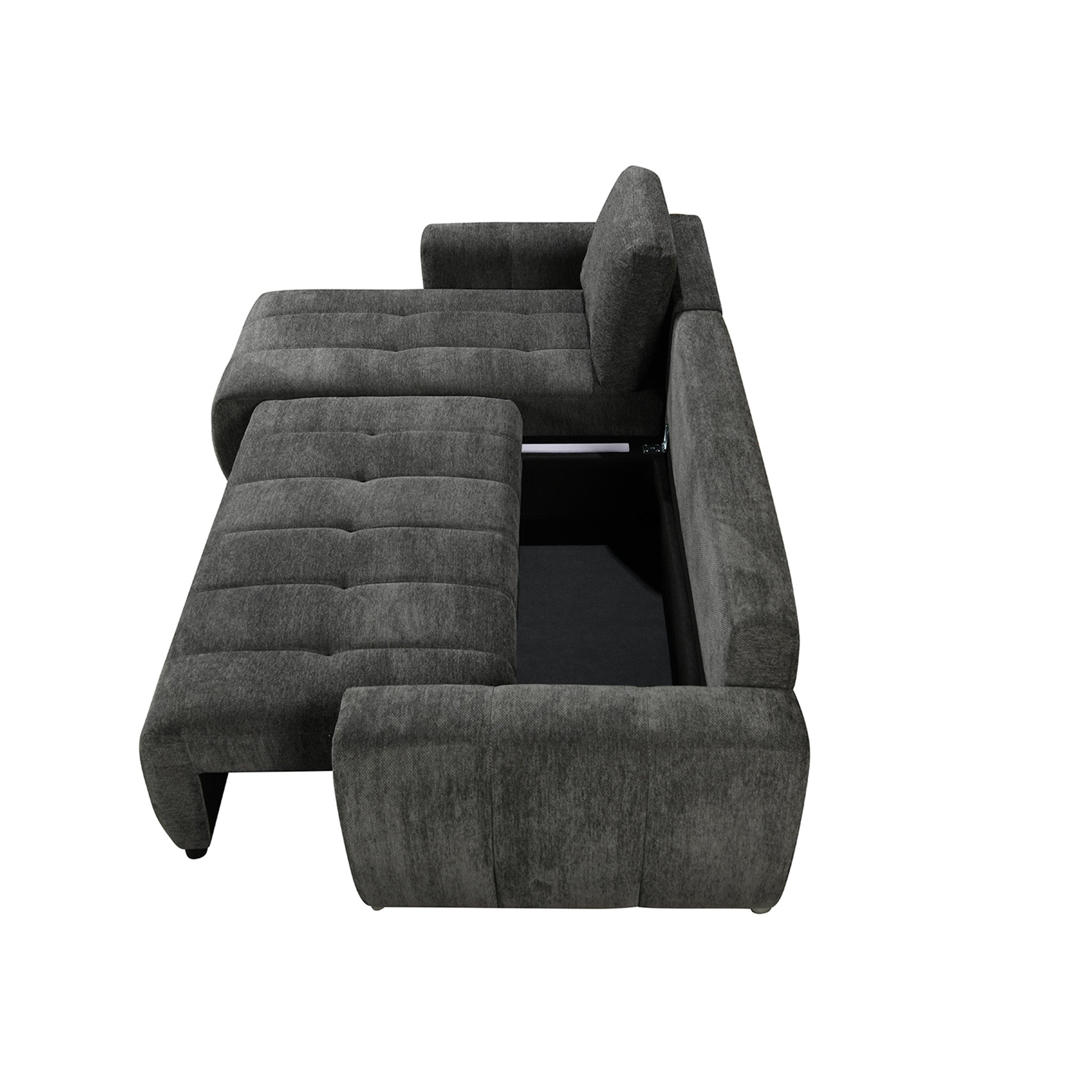 When you pull out the base of the sofa, you’ll reveal a generous compartment, perfect for stowing blankets, pillows, or other essentials.