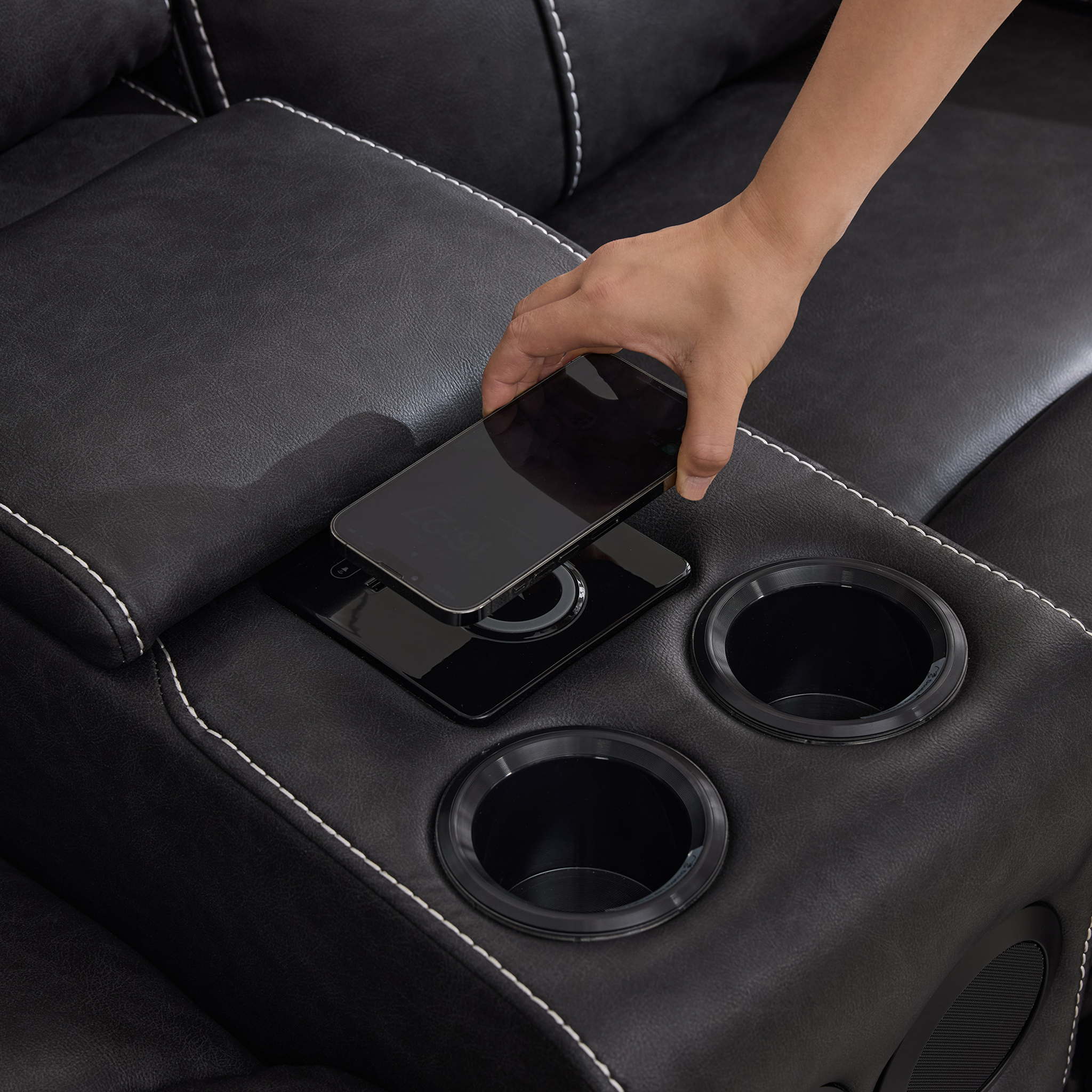 Every product of this set is equipped with a powered headrest and USB and USB-C ports, but the 2 seater is equipped with a powered headrest, wireless charging, USB and USB-C ports, an Aux port, plus 2 touch LED cupholders, ensuring everything you need is at your fingertips. A storage drawer and hidden storage with 2 UK plugs within the console keeps your space tidy while keeping essentials close at hand. Plus the Bluetooth speakers controlled from the centre console.Our Bestsellers